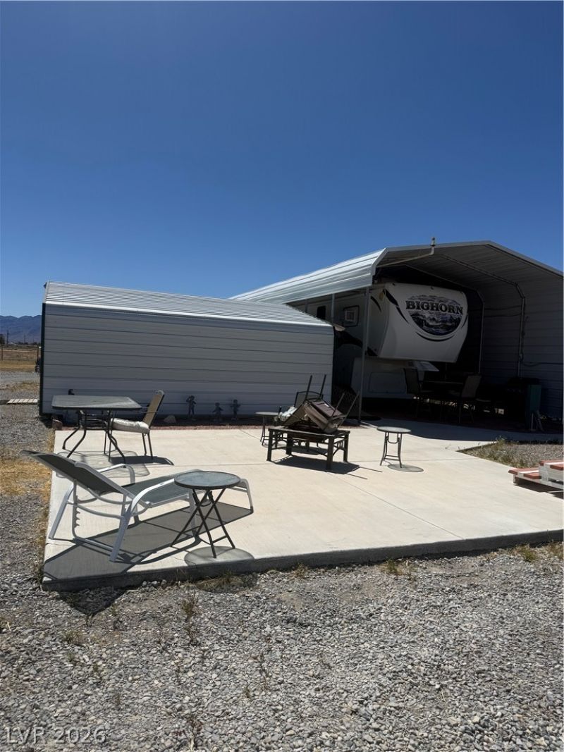 5' chain link fence surrounding this entire .92 acre parcel which has many extra improvements including well, septic and power. These improvements also include 3 Sheds 12x12, 15x11 and a 12x16 adjacent to the RV Shade. There is also 2 combination 1 day RV shade structures with shaded parking for vehicles and a concrete slab which was previously used as a firepit. The interior and exterior pictures of the RV on the property were included as it is parked on the property and can be purchased outside of escrow. This lot has options galore and is a great property to build your new custom home.